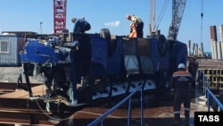 В Краснодарском крае в море со строящегося пирса упал автобус с рабочими предприятия "Таманьнефтегаз".